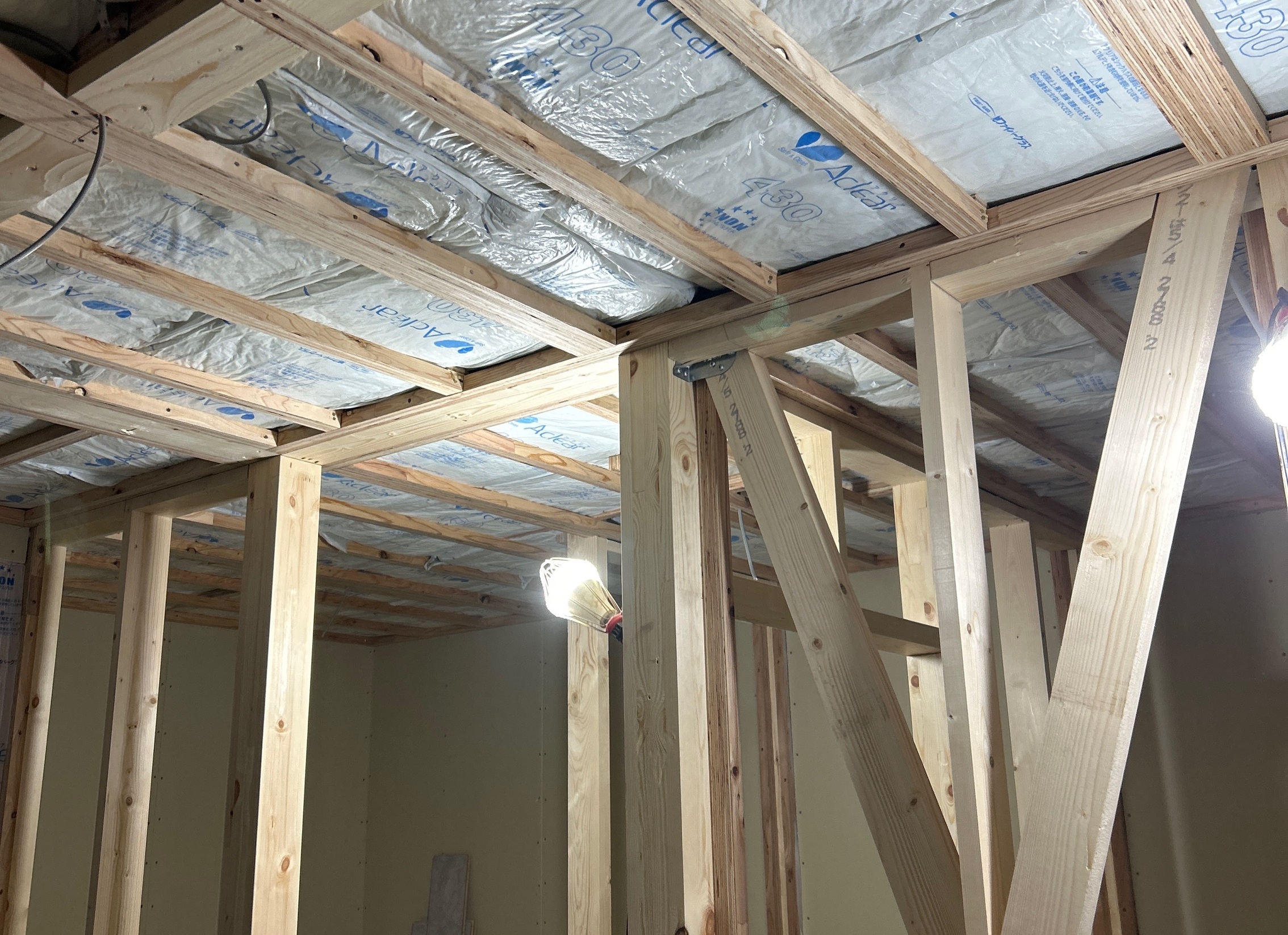 大工さんの手によって下地が組まれ、部屋の広さや形がはっきりと分かるようになってきています。